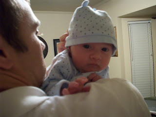 By day three he had to have a feeding tube. He is such mellow and happy tempered baby that it didn't even seem to phase him. His Grandma Burby was holding him while i was talking to him and he gave us a cute little smile :)